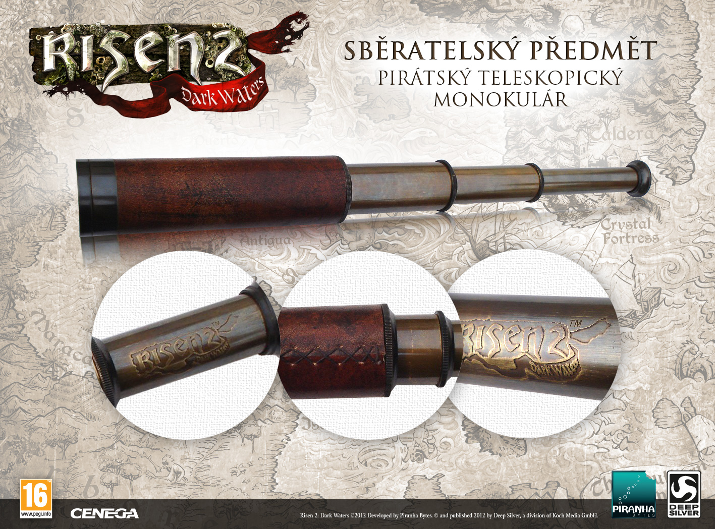 CENEGA nám dnes prozradila, jaký další předmět k Risen 2 bude k dispozici. Jedná se o pirátský dalekohled, nebo-li monokulár. Vypadá opravdu skvostně, jak se můžete sami přesvědčit na obrázku níže. Zatím ovšem nemáme další podrobnosti, kdy a kde a popřípadě za kolik bude tento předmět k dostatní, takže si budeme muset ještě počkat.