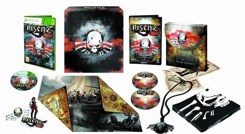 Dnes byl odhalen obsah sběratelské edice Risen 2, která se bude prodávat ve Velké Británii. Její cena je 70 liber (cca 2000 Kč) a obsahuje následující: Making of DVD (rozhovory s vývojáři), soundtrack CD, oboustranný plakát (mapa, artwork hrdiny a jeho posádky), pirátskou vlajku s lebkou z motivů hry, amulet, exkluzivní kolekci karet s artworky na vysoce kvalitním papíru, tři samolepky Risen 2.